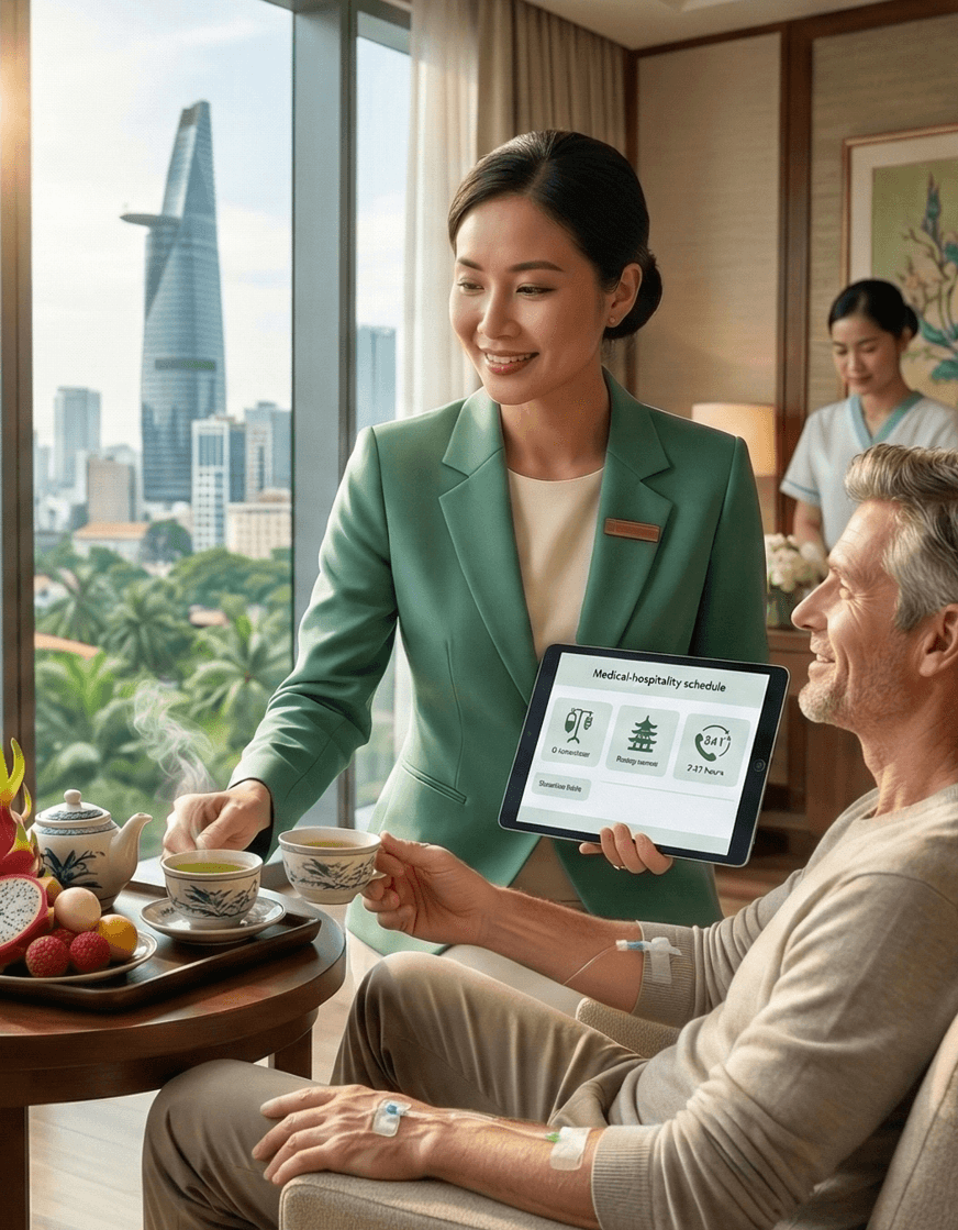 We are a medical travel concierge, not a clinic. We help international clients plan a smoother treatment journey in Vietnam by coordinating with trusted clinics and doctors, arranging pre-departure support, and assisting with accommodation, transport, and recovery services.